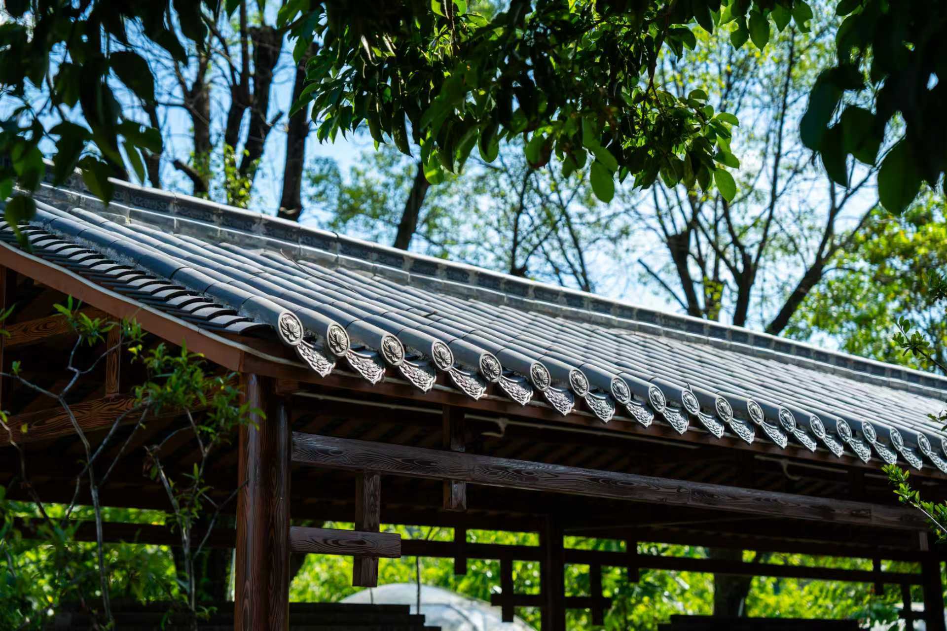 青瓦靜置屋頂,與枝葉交映,自成意境。