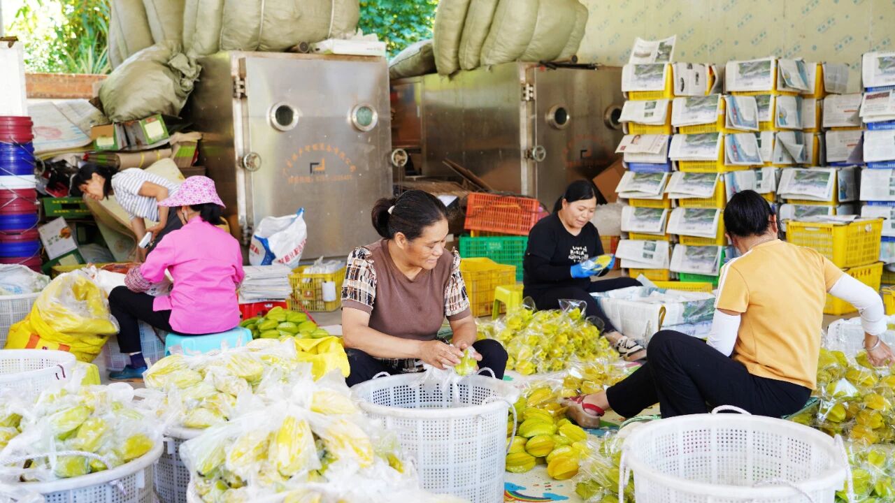 合作社工人對楊桃進(jìn)行分揀、打包;葜萑請(bào)記者黃宇翔 通訊員龍融心 攝