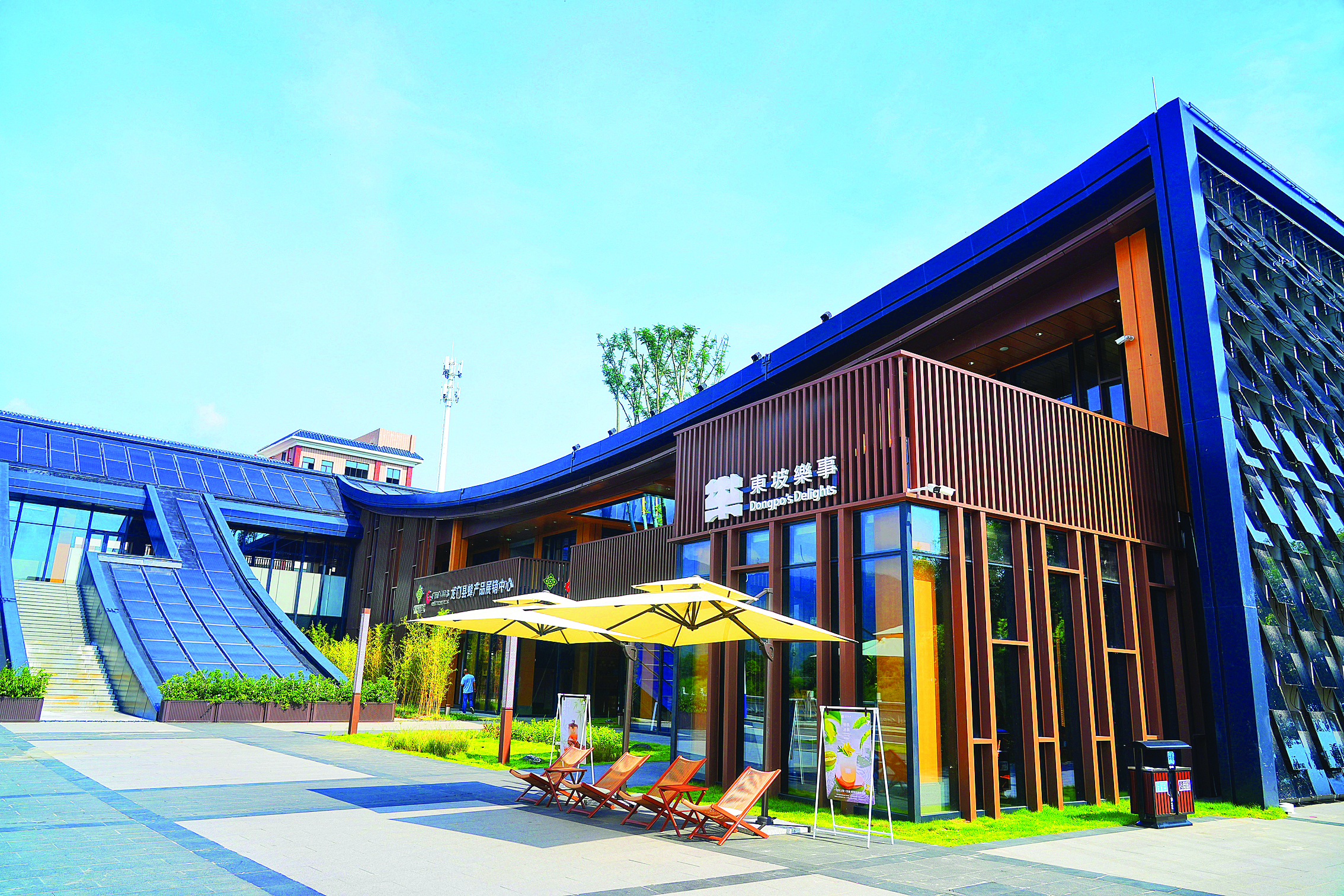走進(jìn)驛站內(nèi)部,更是處處藏著“東坡樂事”的巧思。一層的休閑區(qū)里,“花魁”“水拓長(zhǎng)煙”等特色咖啡的香氣彌漫,不少游客坐在臨窗的位置,一邊啜飲咖啡,一邊欣賞窗外的河景!耙郧翱傆X得‘古榕聽琴’‘竹窗夜話’是詩(shī)詞里的場(chǎng)景,沒想到在這里能坐著喝咖啡、看河景,這種閑適感和詩(shī)里寫的一模一樣!眮碜陨钲诘挠慰屠钆颗e著咖啡杯,笑著和同伴分享感受。