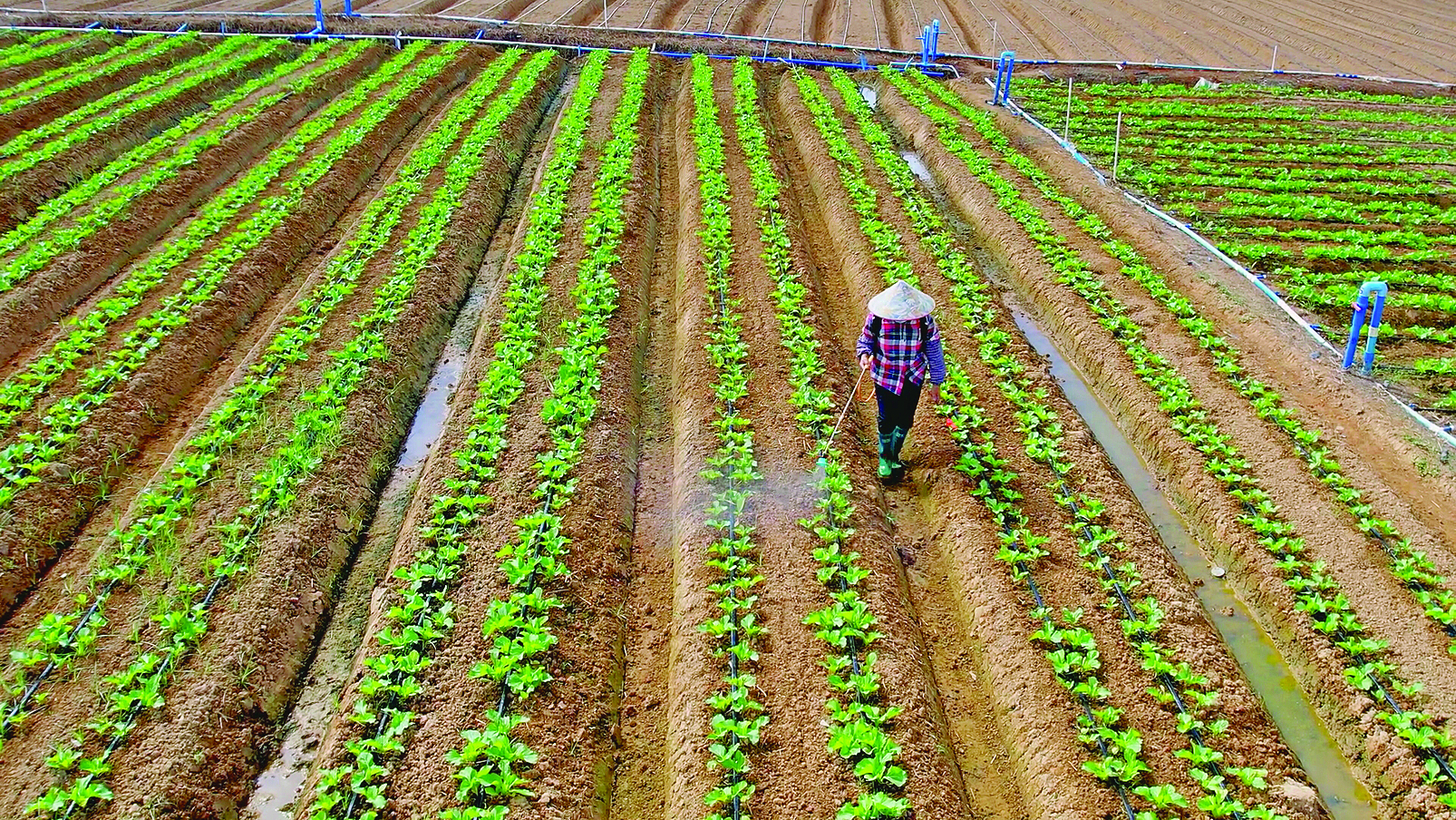 龍?zhí)镦?zhèn)鄔村村民在打理菜地;葜萑請笥浾唿S宇翔 通訊員龍融心 攝