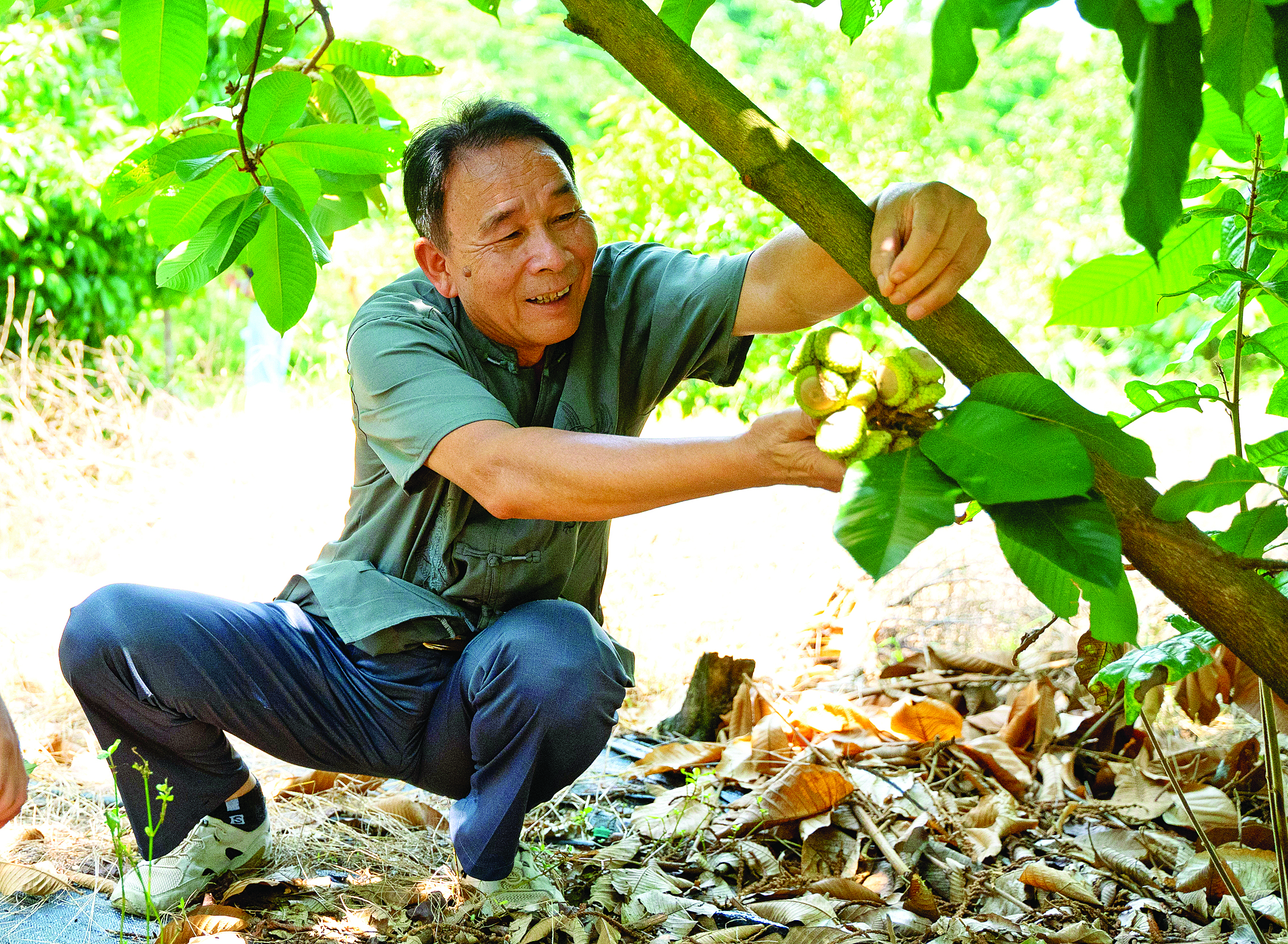 走進(jìn)種植基地,只見連片的馬古栗樹枝繁葉茂,枝頭掛滿形似陀螺的翠綠果實(shí),種植戶李周文正穿梭林間查看果實(shí)長勢!拔曳N馬古栗五年了,當(dāng)初選這個(gè)品種,就是看中它抗災(zāi)能力強(qiáng)、管護(hù)省心!崩钪芪男χ榻B,馬古栗原本是南昆山野生果,無需打農(nóng)藥,一年只需施肥一兩次,日常做好除草修枝即可,管護(hù)成本低且產(chǎn)量穩(wěn)定。樹齡五年的馬古栗樹單株產(chǎn)量約100公斤,一畝地可種植30棵,當(dāng)前市場售價(jià)每公斤30元,經(jīng)濟(jì)效益十分可觀。談及果實(shí)特性,李周文說,馬古栗果肉富含維生素、鈣、鐵、鉀等元素,既能直接食用,也可用于榨油、泡酒、制作米餅等,用途廣泛。