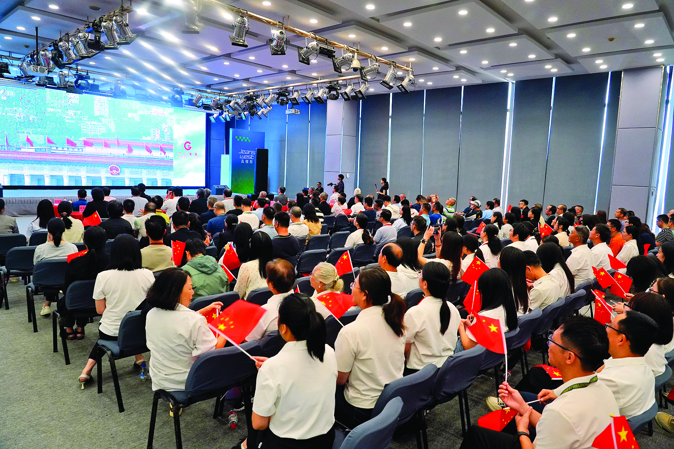 9月3日上午,旭日集團中國總部組織260余名中高層管理人員及香港籍員工共同觀看了紀念中國人民抗日戰(zhàn)爭暨世界反法西斯戰(zhàn)爭勝利80周年大會的現(xiàn)場直播,F(xiàn)場氣氛熱烈,掌聲與歡呼聲不時響起。