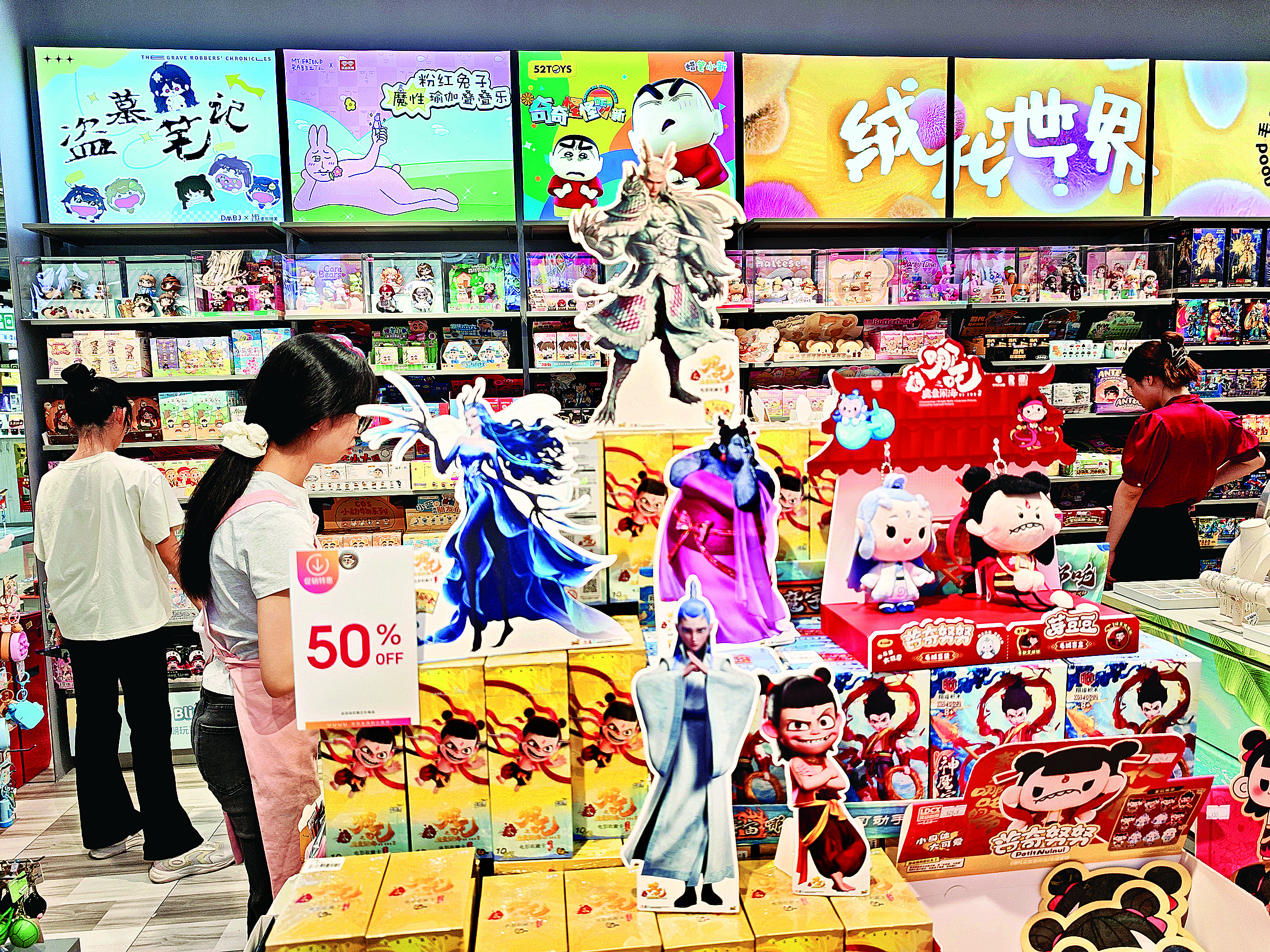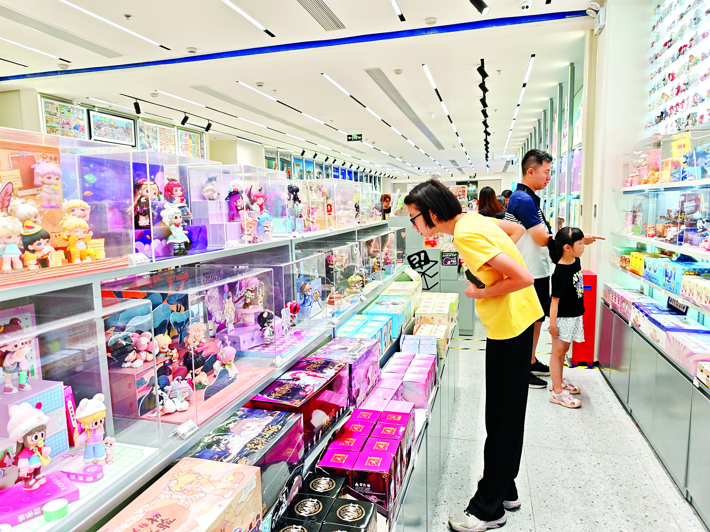 在市區(qū)華貿(mào)天地和港惠新天地等大型商業(yè)綜合體,總能不經(jīng)意遇到“谷子店”!肮茸印保从⑽摹癎oods”(商品)的諧音,是對漫畫、動漫、游戲等版權(quán)作品衍生出的一切周邊產(chǎn)品的統(tǒng)稱。這些“谷子店”的外觀設(shè)計充滿了動漫元素,店內(nèi)則擺滿了各種IP玩偶、小掛飾、手辦、卡牌、徽章等產(chǎn)品,吸引著眾多年輕人來“吃谷”。