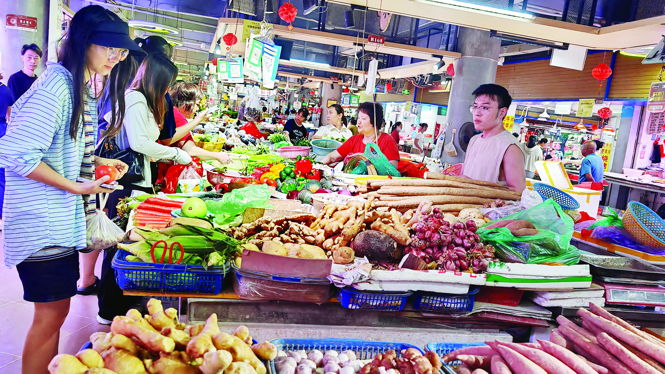 9月22日下午5時許,市區(qū)河南岸中心市場蔬菜攤檔前擺滿新鮮蔬菜,前來采購的市民絡(luò)繹不絕;葜萑請笥浾唏槆t 攝