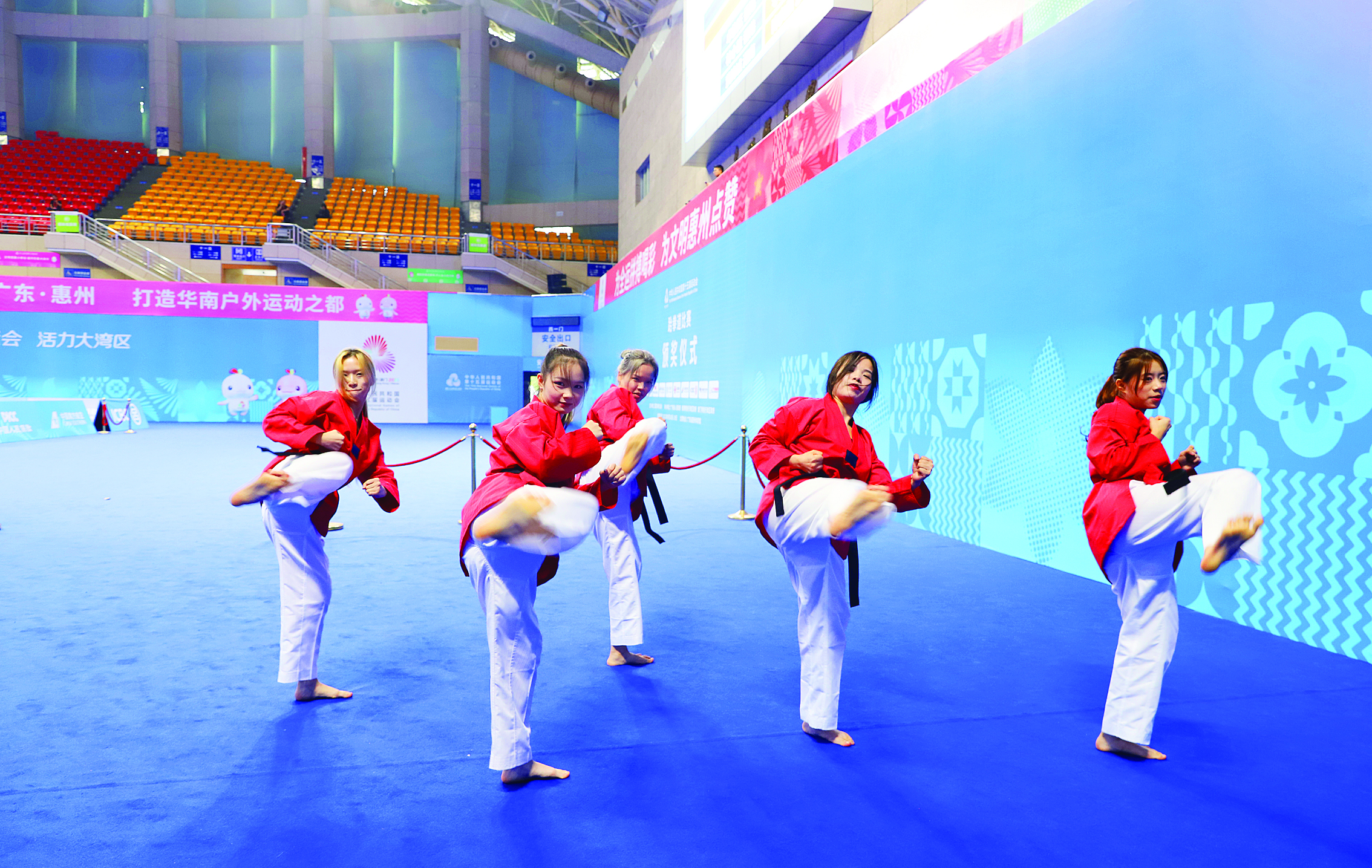 9月25日,惠州體育館十五運會跆拳道比賽聯(lián)排現(xiàn)場,體育展演在緊張排練。
