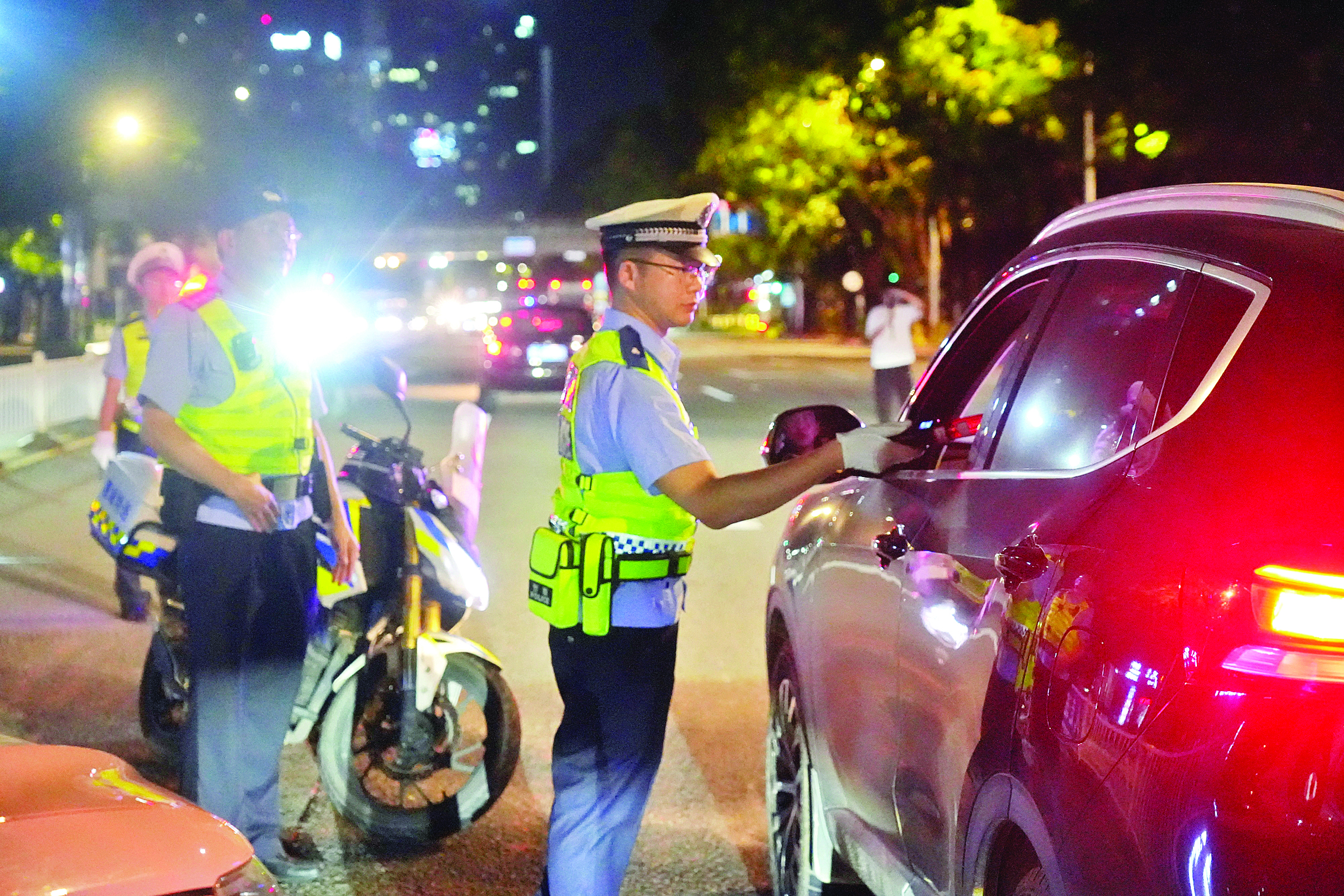 惠州公安設(shè)卡盤查打擊交通違法行為。