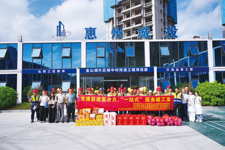 為慶祝中秋、國慶雙節(jié)到來,9月29日上午,惠州市惠城區(qū)金山湖片區(qū)城中村改造項(xiàng)目(以下簡稱“城中村改造項(xiàng)目”)現(xiàn)場暖意融融。一場以“黨建聯(lián)建聚合力,‘一站式’服務(wù)暖工友”為主題的活動在此開展,為60名項(xiàng)目施工班組及勞務(wù)人員送上“五重關(guān)懷”,讓組織溫暖直抵人心。