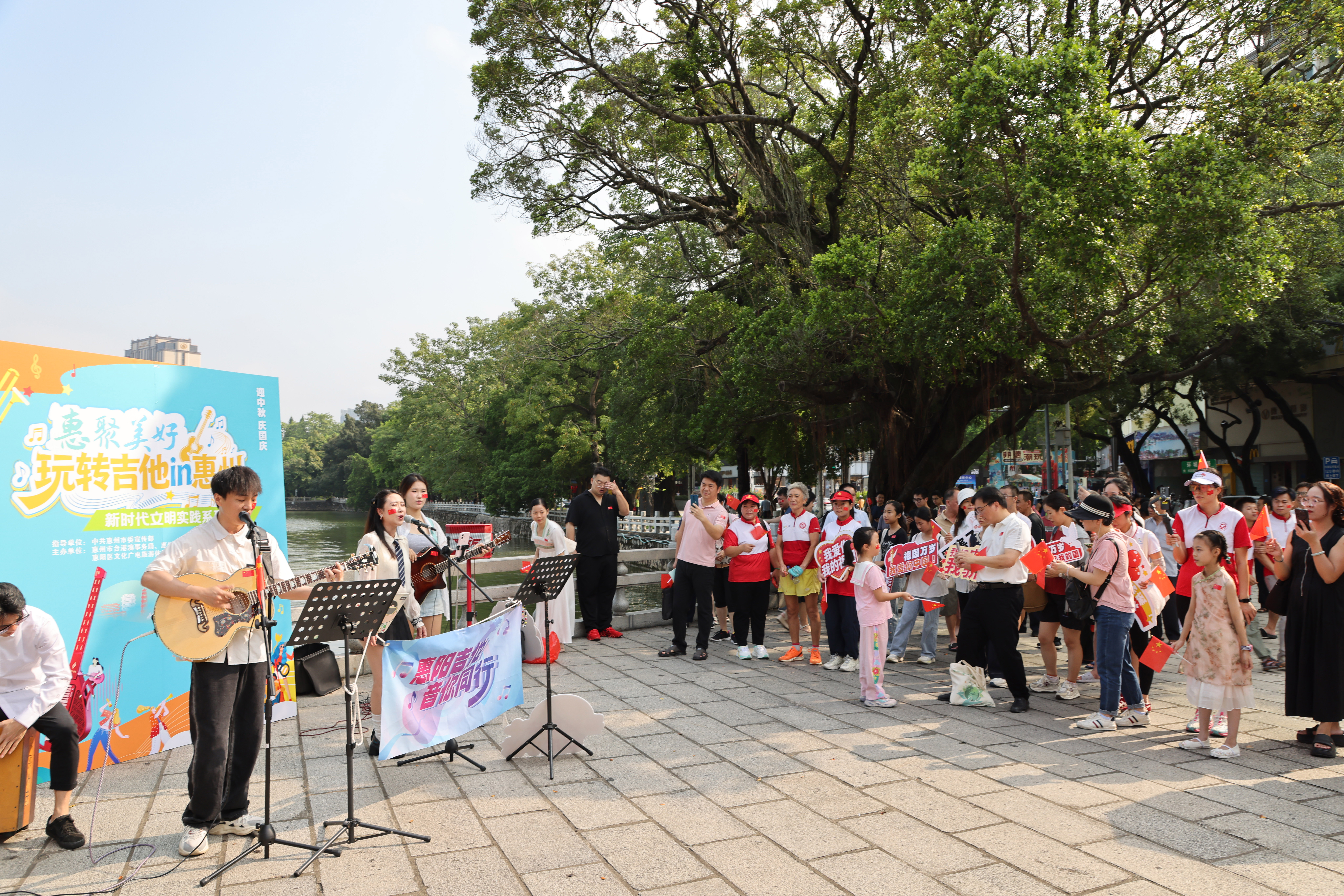這是“惠聚美好”新時(shí)代文明實(shí)踐活動(dòng)——“玩轉(zhuǎn)吉他in惠州”國慶吉他快閃系列活動(dòng)首場(chǎng)活動(dòng),吸引眾多市民游客參與,點(diǎn)燃國慶歡樂熱潮。