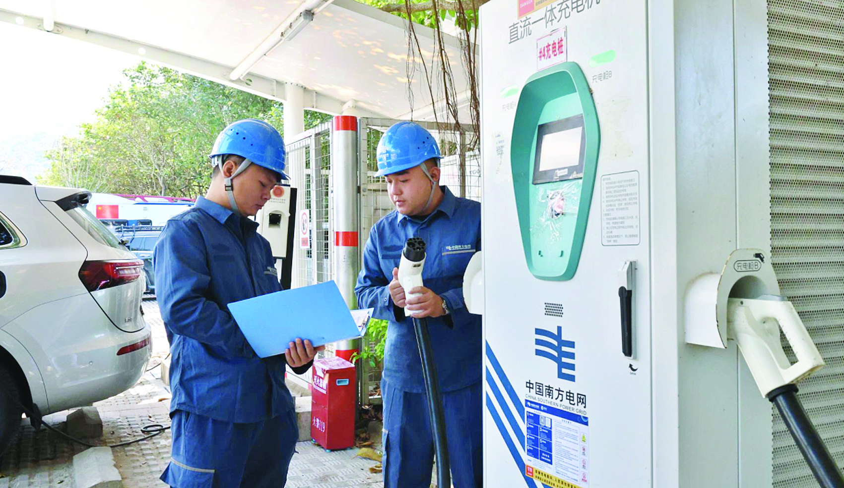 惠東供電局巽寮供電所運(yùn)維人員對(duì)景區(qū)充電樁開(kāi)展用電檢查。 惠州供電局提供