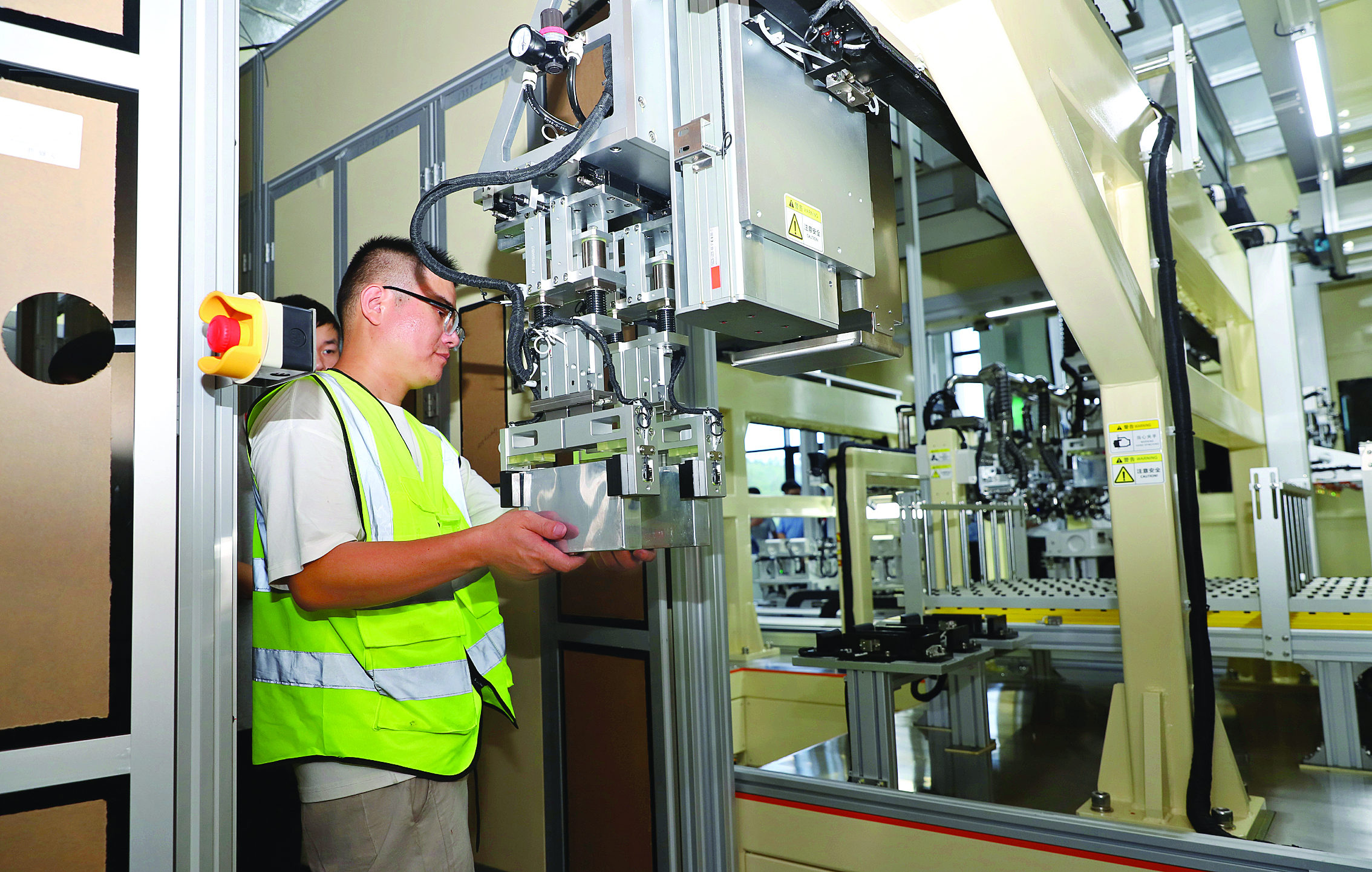 金源機(jī)器人公司通過自研AI機(jī)器人技術(shù),實(shí)現(xiàn)“用機(jī)器人生產(chǎn)機(jī)器人電池”;葜萑請(bào)記者鐘暢新 攝