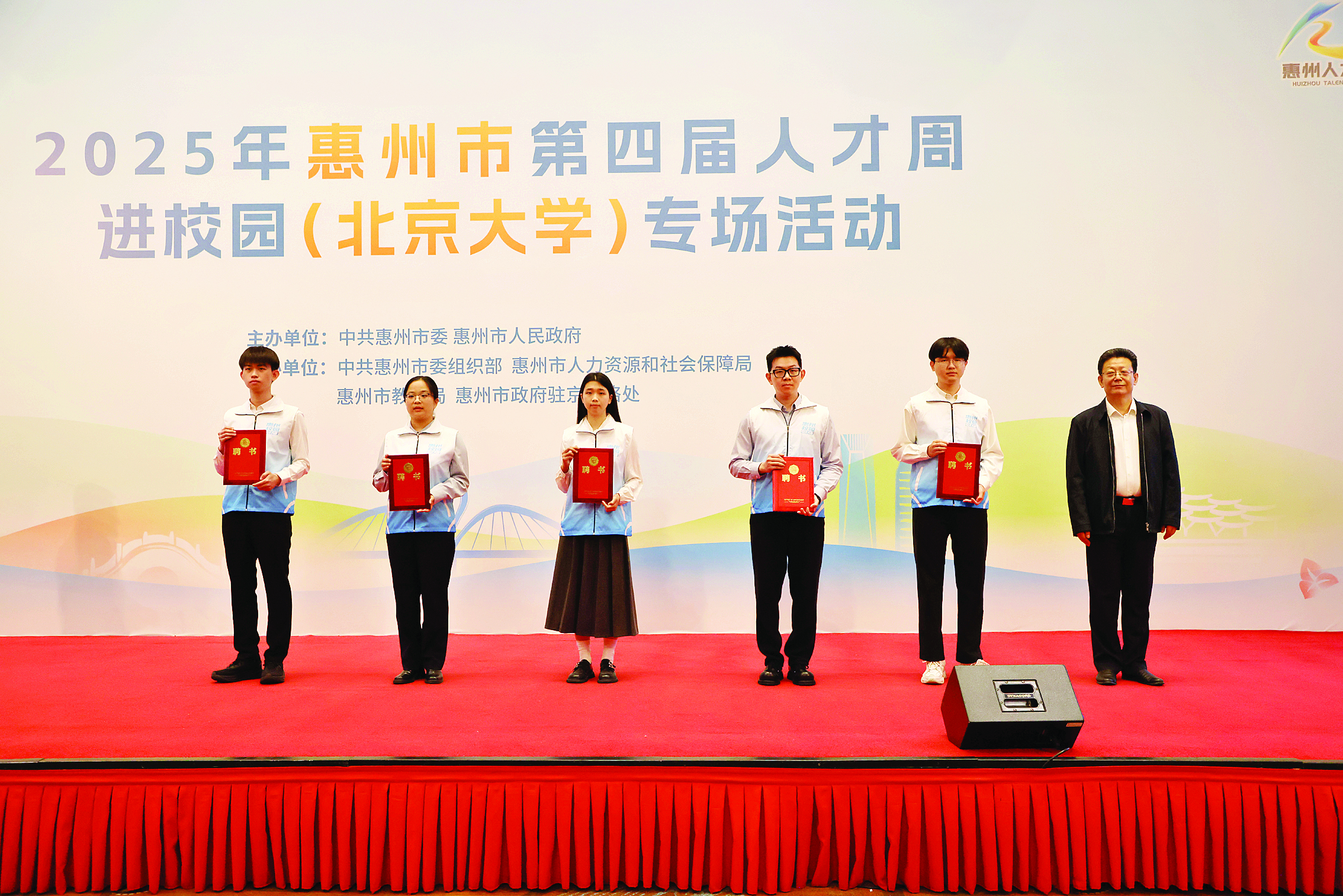 為惠州籍北大學(xué)子頒發(fā)“校園引才大使”證書。惠州日報(bào)記者王建橋 攝