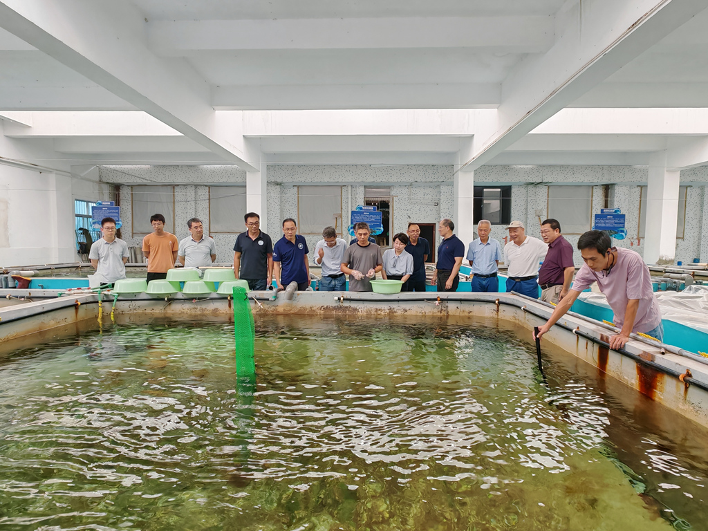 專(zhuān)家參觀及達(dá)副葉鲹的人工繁育和苗種規(guī)模化生產(chǎn)情況。
