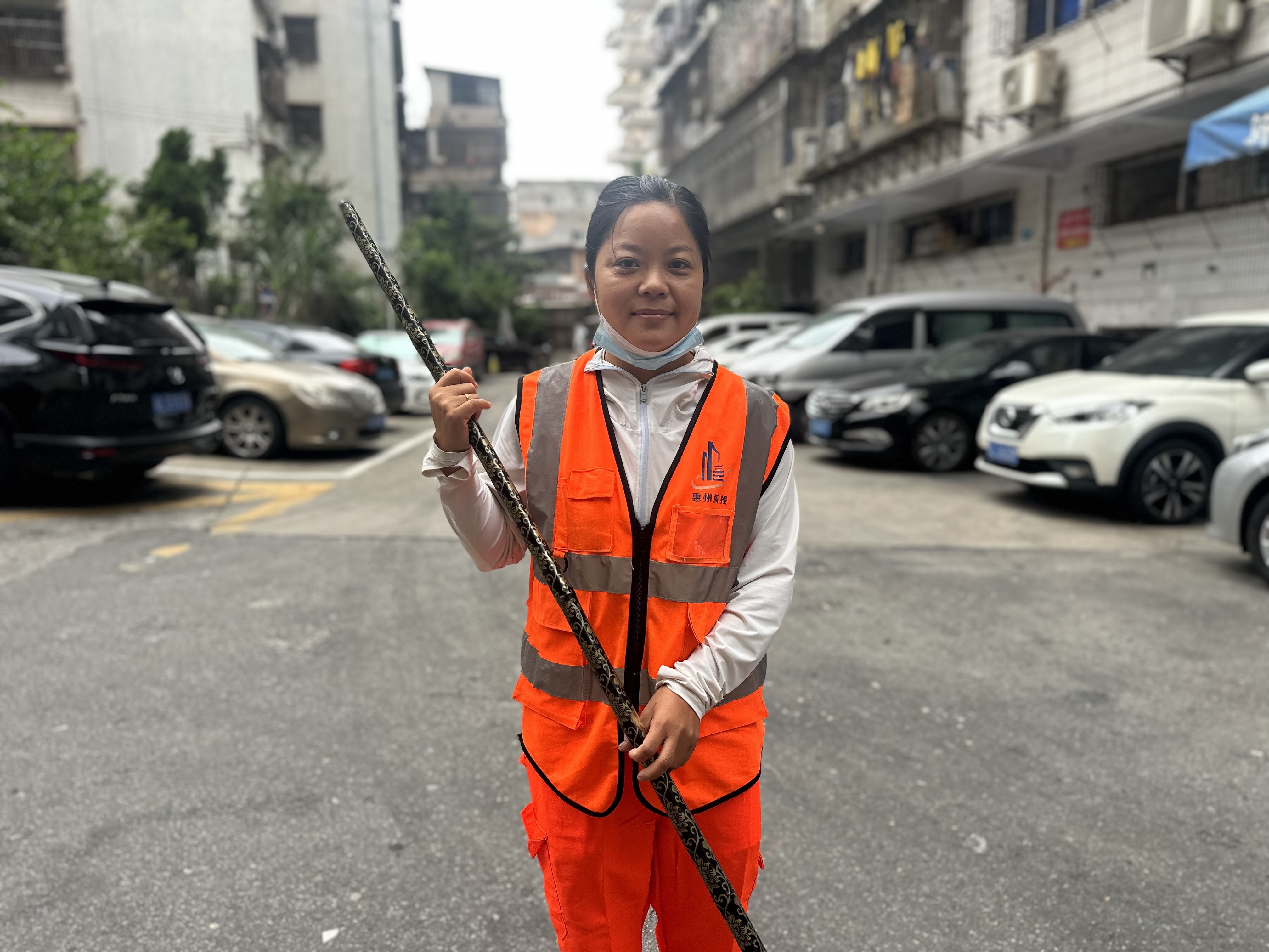 41歲的高曉寧是一位在惠州生活了10多年的新惠州人。自6年前成為環(huán)衛(wèi)工人起,她便與江南街道祝屋巷結(jié)下了不解之緣,用掃帚與汗水,為這條國家級文旅街巷擦亮了文明底色。