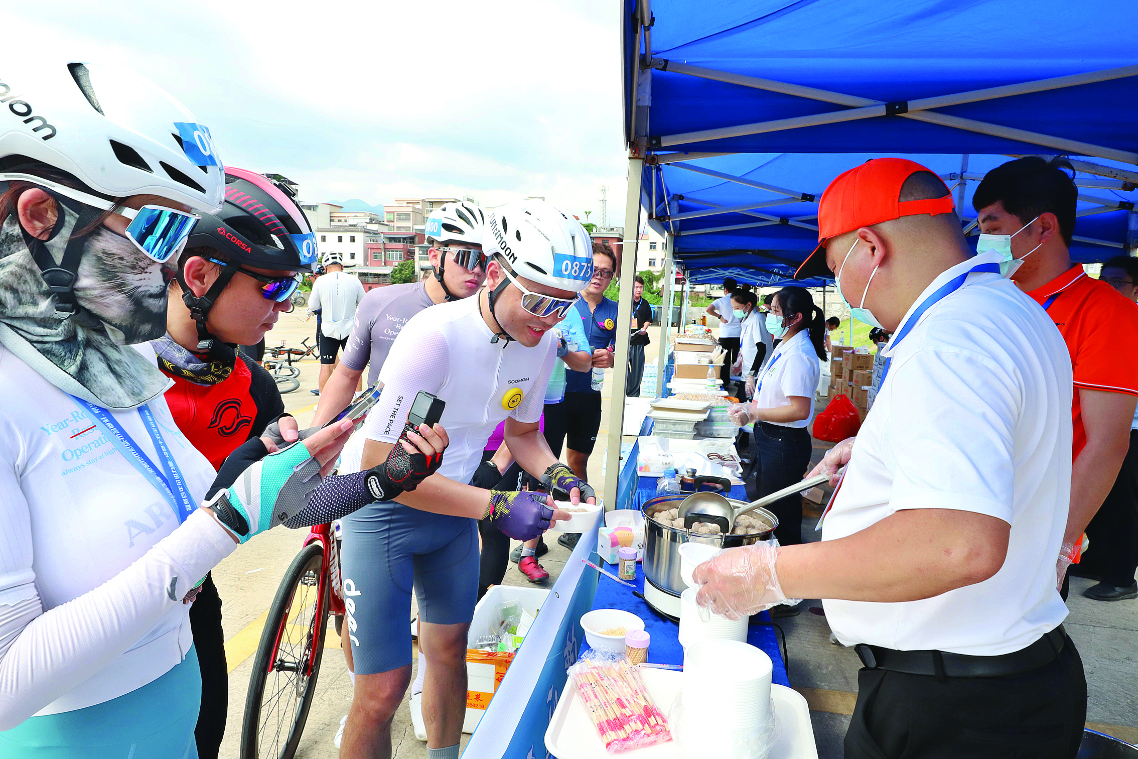 讓騎友們感到暖心的還有,沿線的民宿、農(nóng)家樂、村黨群服務(wù)中心自覺地開放自家?guī),為騎友們提供方便;村衛(wèi)生站也積極做好臨時(shí)應(yīng)急醫(yī)療保障。騎行活動(dòng)的開展也得到了愛心企業(yè)的大力支持。如,博羅縣聚源飲用水有限公司免費(fèi)提供礦泉水1200支,在羅浮山風(fēng)景名勝區(qū)旅游文化廣場(chǎng)派發(fā)給騎友;順南食品(惠州)有限公司提供了7500份即食黑芝麻糊,隨活動(dòng)物資包一起發(fā)給參加活動(dòng)的騎友。