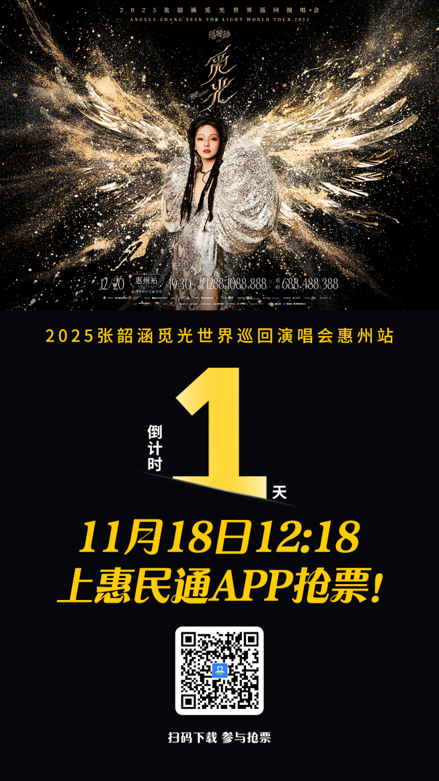 想要奔赴這場(chǎng)音樂盛宴的市民,可提前下載 “惠州惠民通 APP” 做好搶票準(zhǔn)備,鎖定 11 月 18 日 12:18 的搶票時(shí)間,切勿錯(cuò)過與張韶涵現(xiàn)場(chǎng)相見的機(jī)會(huì)!