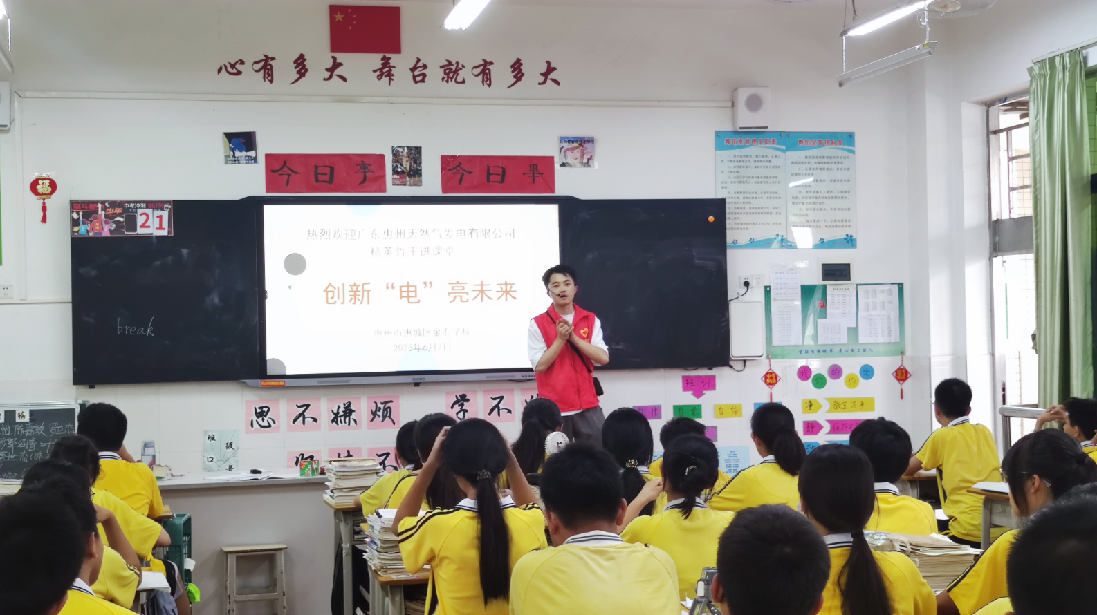 惠電公司主動對接博羅縣柏塘鎮(zhèn)新陂小學(xué)、金石學(xué)校,將能源特色與科普服務(wù)相結(jié)合,組織公司技術(shù)骨干走進(jìn)校園,開展“安全用電與能源科普”講座——通過實(shí)物演示、案例講解等通俗方式,為學(xué)生普及電力安全常識、清潔能源知識,幫助鄉(xiāng)村孩子提升安全用電意識。既填補(bǔ)了鄉(xiāng)村學(xué)校能源科普的空白,也為孩子們打開了認(rèn)識現(xiàn)代能源的窗口。