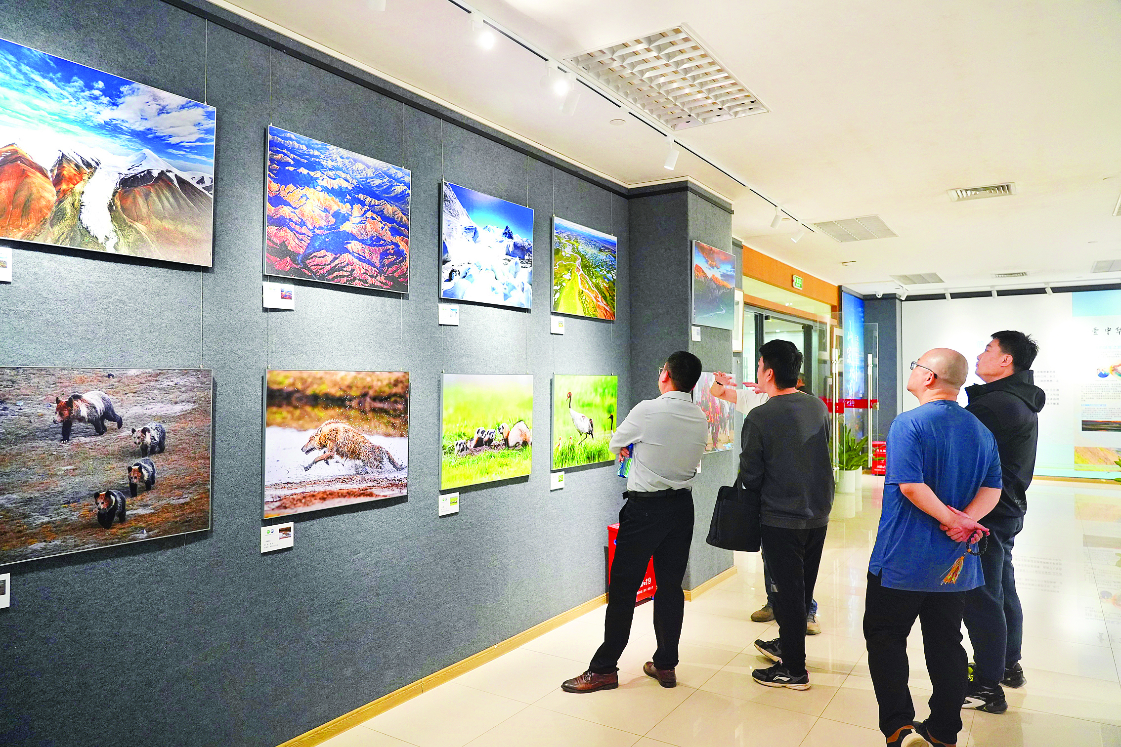 市民在觀看三江源生態(tài)文化展;葜萑?qǐng)?bào)記者朱金贊 攝