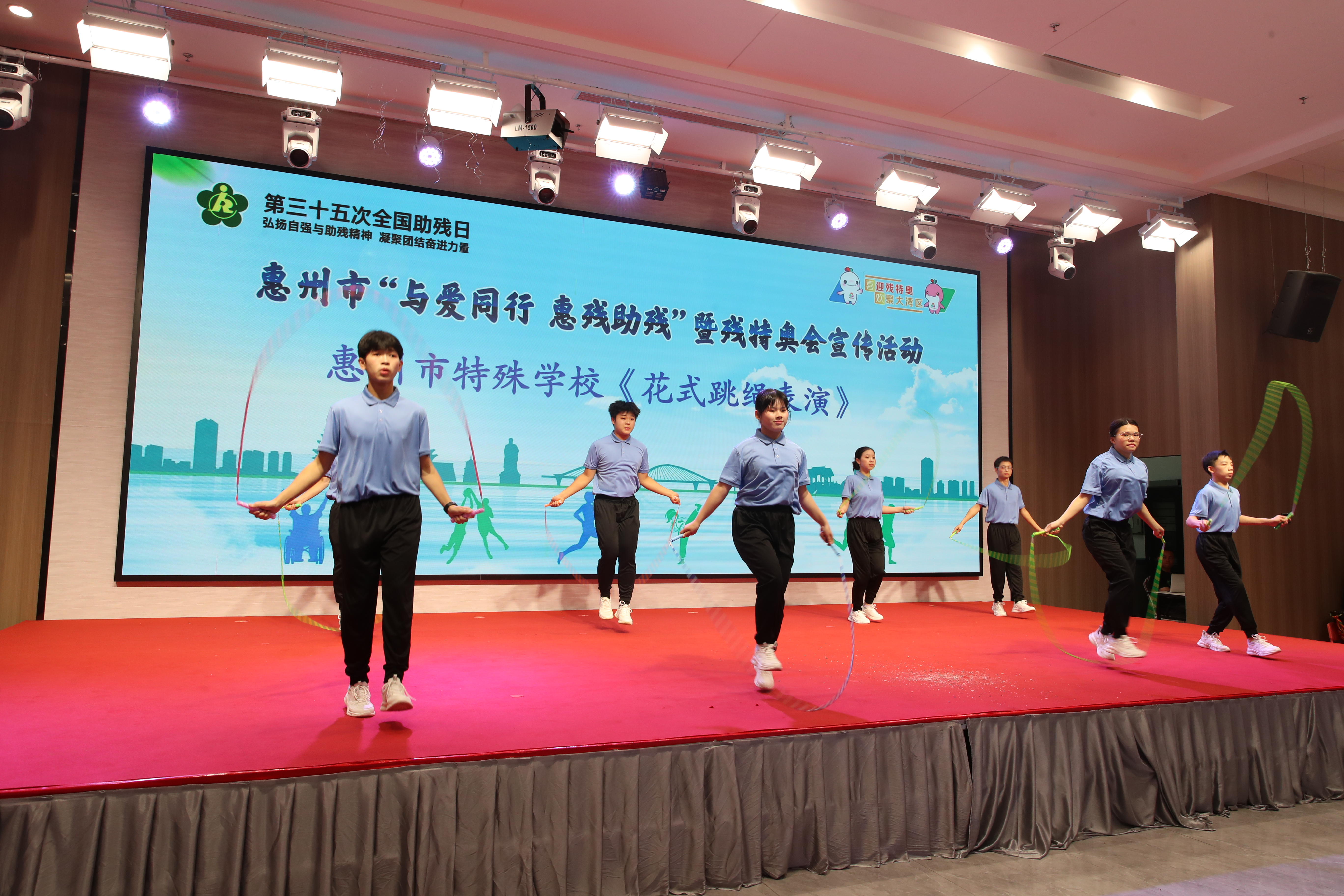 惠州市特殊學(xué)校學(xué)生表演的花式跳繩亮相第35次全國(guó)助殘日活動(dòng)。
