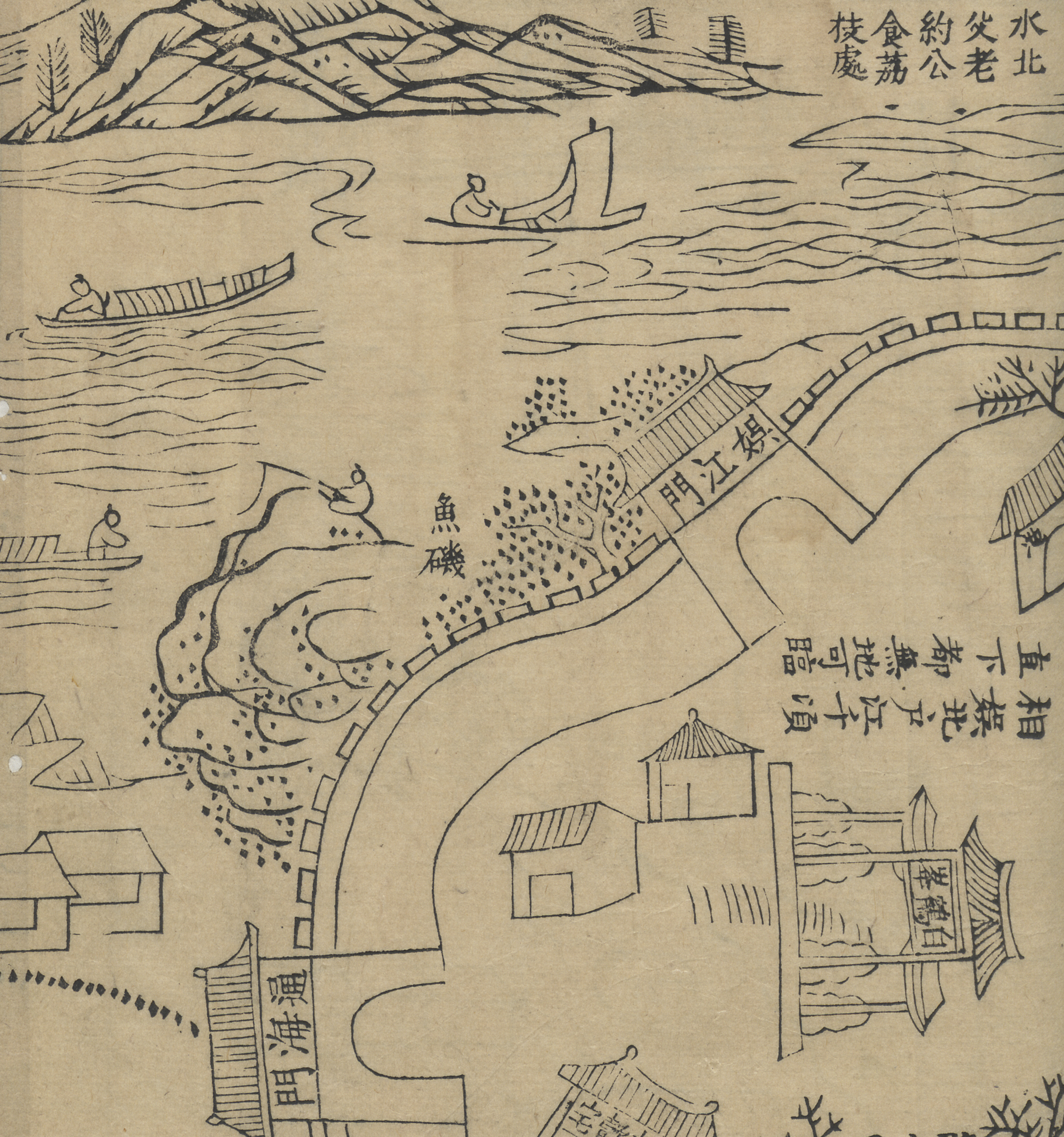 明崇禎《惠景全圖》中的“魚磯”,即東坡釣磯石。 本版圖片(除署名外) 由嚴(yán)藝超 翻拍