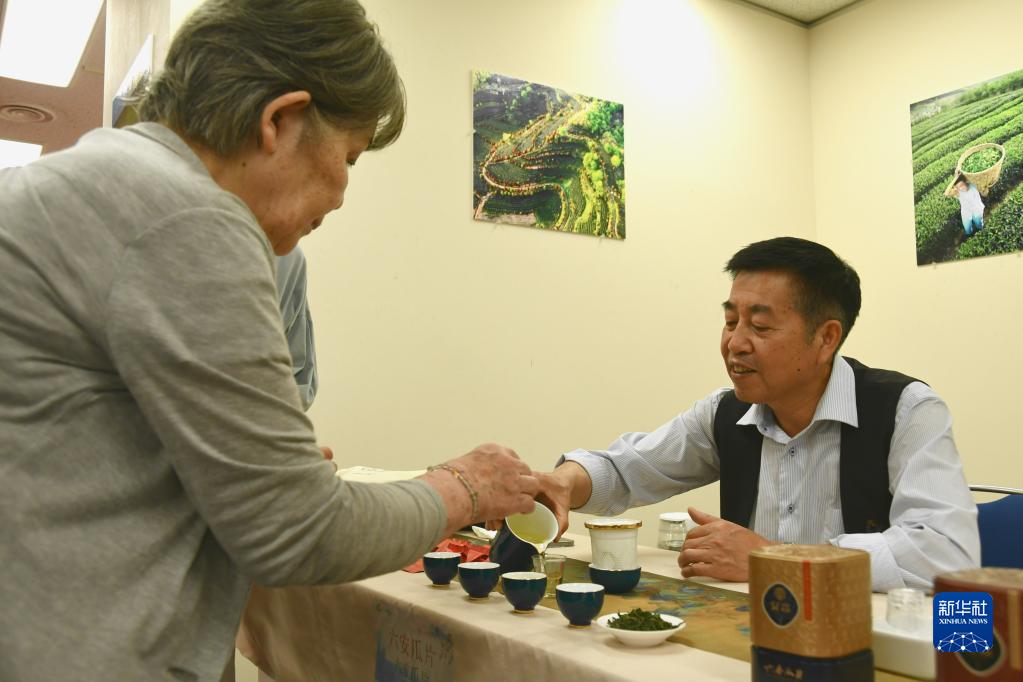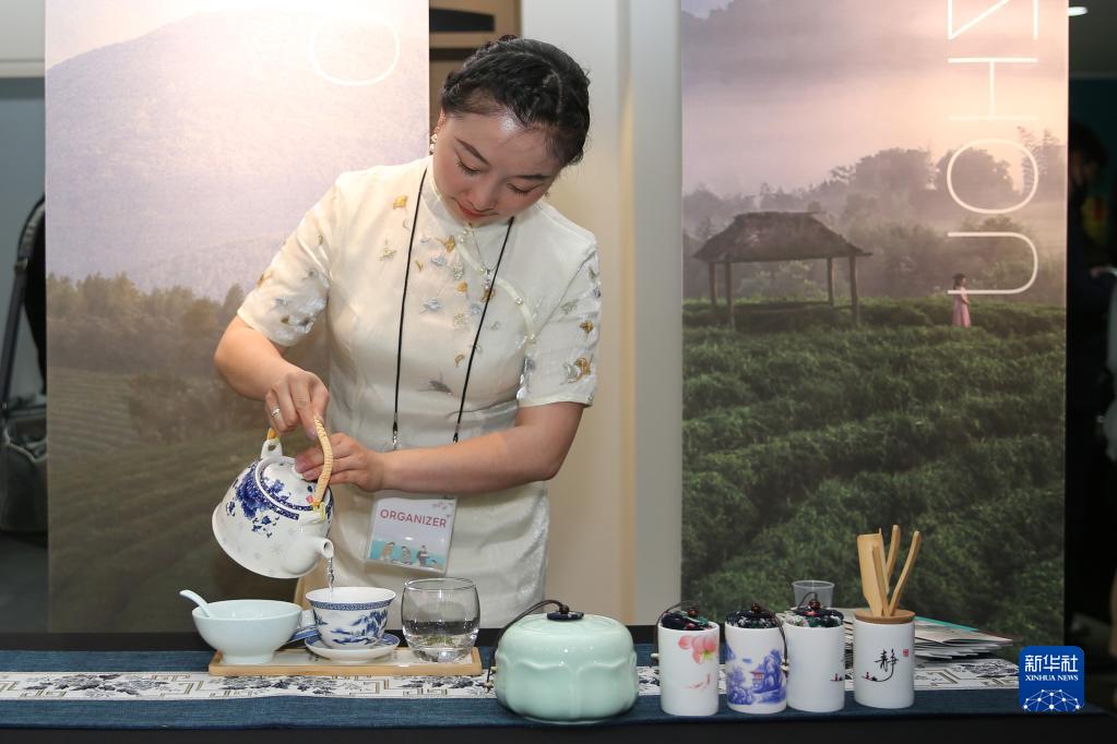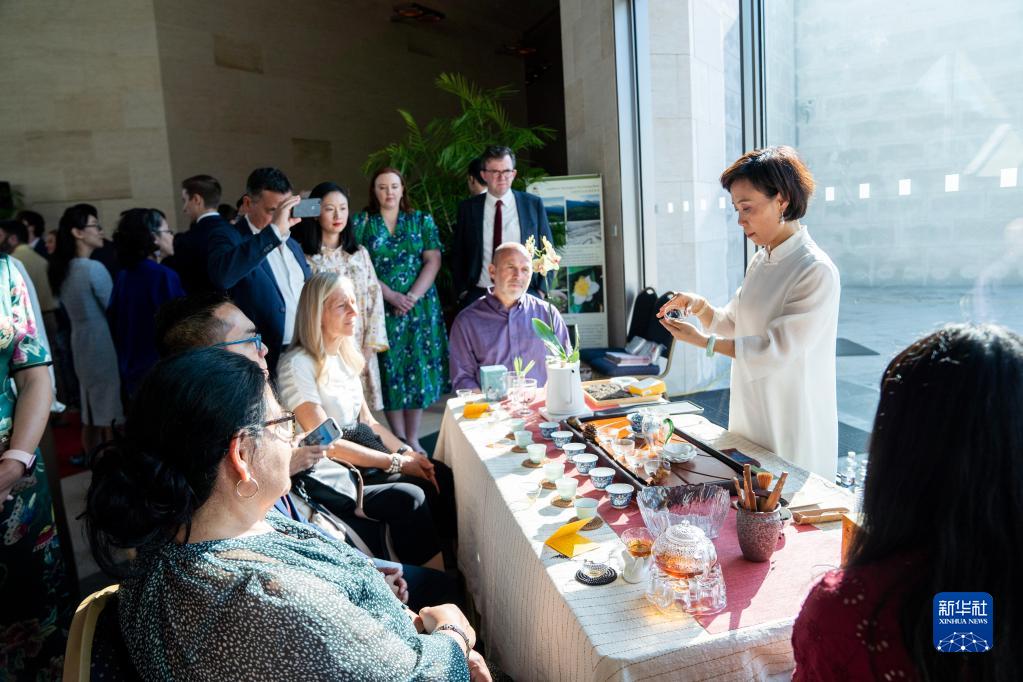 5月21日,在美國(guó)華盛頓中國(guó)駐美國(guó)大使館,茶藝師為來(lái)賓表演茶藝。