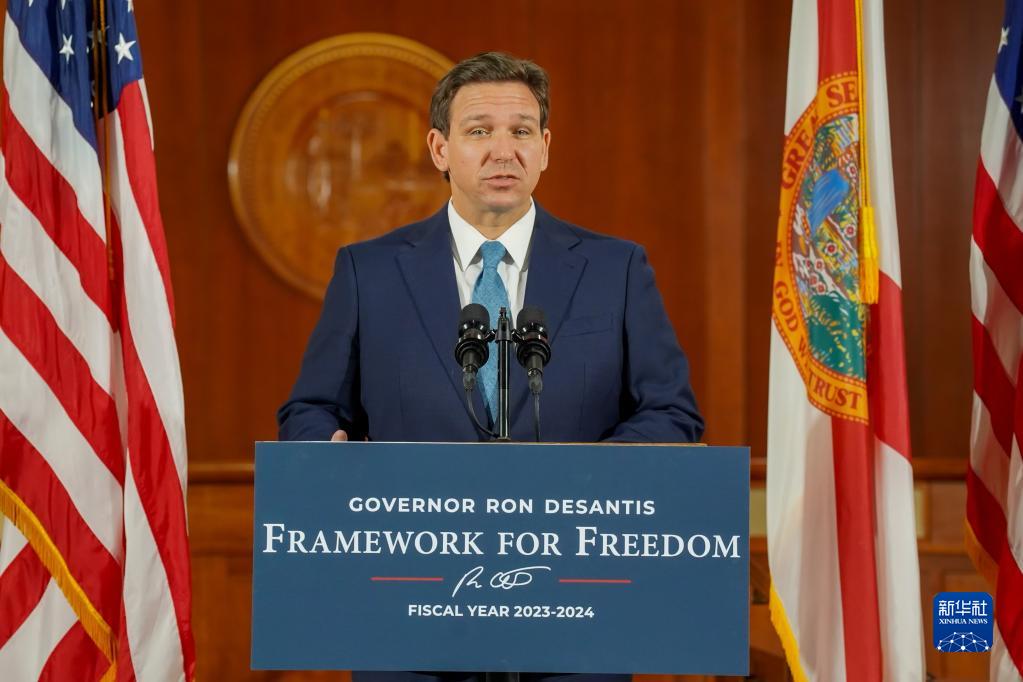 美國佛羅里達州長德桑蒂斯5月24日向聯(lián)邦選舉委員會遞交文書,參加競選下一屆美國總統(tǒng)。