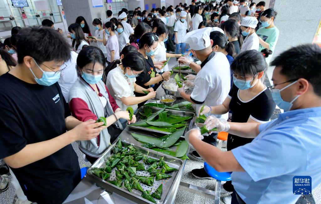 當日,湖北省恩施土家族苗族自治州宣恩縣第一高級中學組織高三學生參加傳統(tǒng)手工包粽子比賽,讓即將踏入考場的學生在親自動手體驗傳統(tǒng)文化的過程中舒緩心情、釋放壓力,以輕松的心態(tài)迎接高考。