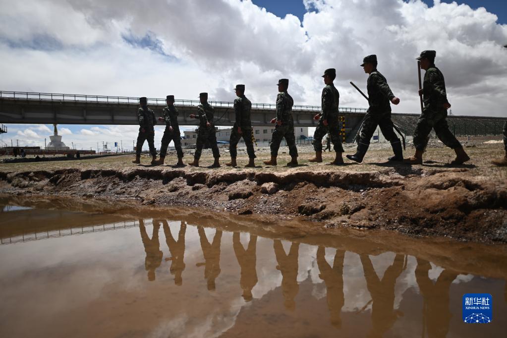 6月4日,武警青?傟(duì)海西支隊(duì)官兵在“守衛(wèi)長江源”主題黨日活動(dòng)中。