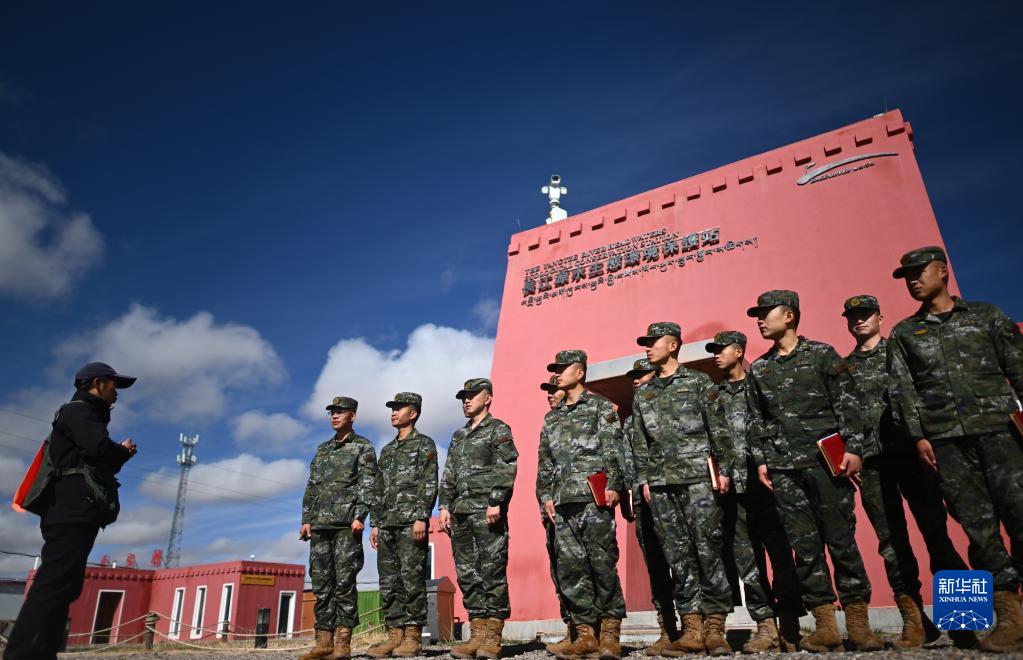 當(dāng)日,在青海省海西蒙古族藏族自治州格爾木市唐古拉山鎮(zhèn),武警青海總隊(duì)海西支隊(duì)官兵在長江源沱沱河開展“守衛(wèi)長江源”主題黨日活動(dòng)。