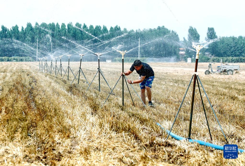 6月11日,河南省開封市尉氏縣蔡莊鎮(zhèn)時(shí)村的村民對(duì)收割后的麥田進(jìn)行澆灌,準(zhǔn)備播種小秋作物。