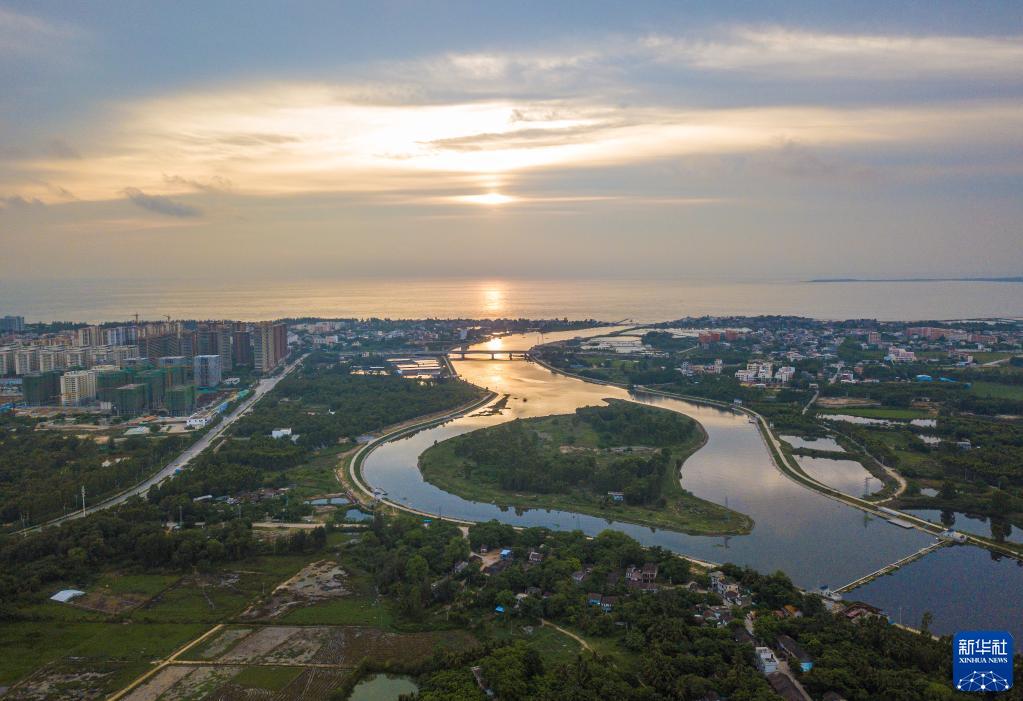 6月9日在海南省東方市拍攝的北黎河景色(無(wú)人機(jī)照片)。