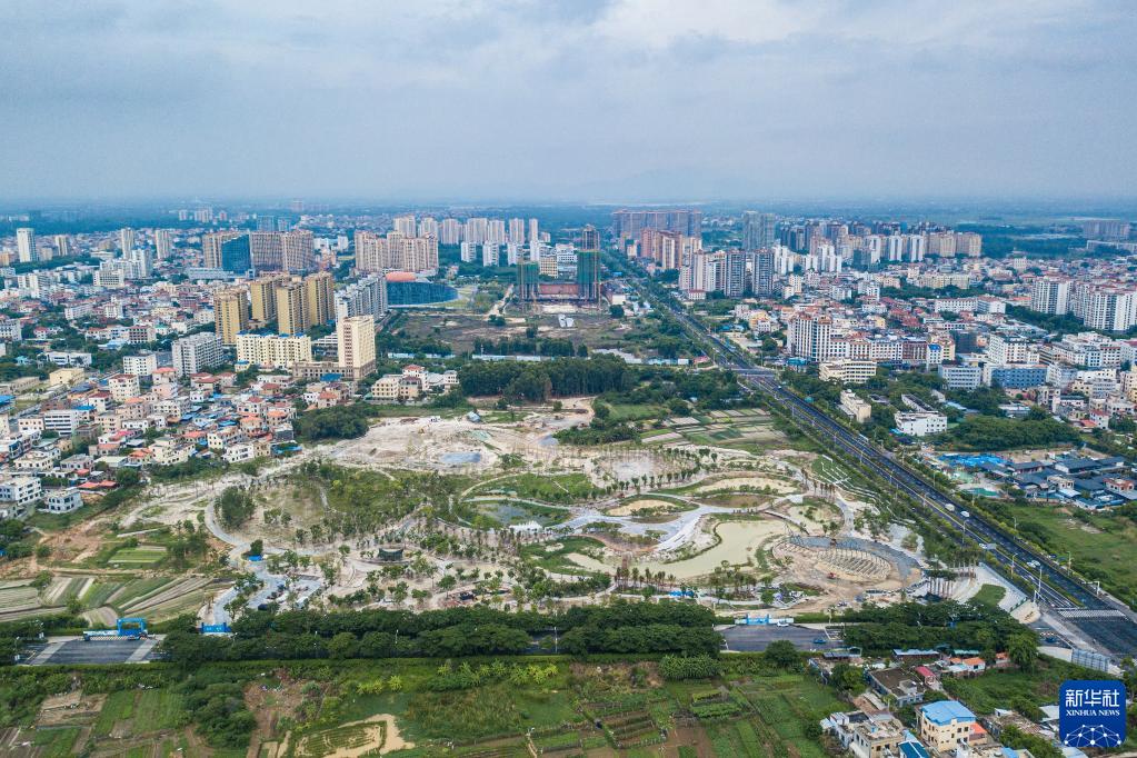 6月10日在海南省東方市拍攝的建設(shè)中的福民湖(福民公園)(無(wú)人機(jī)照片)。