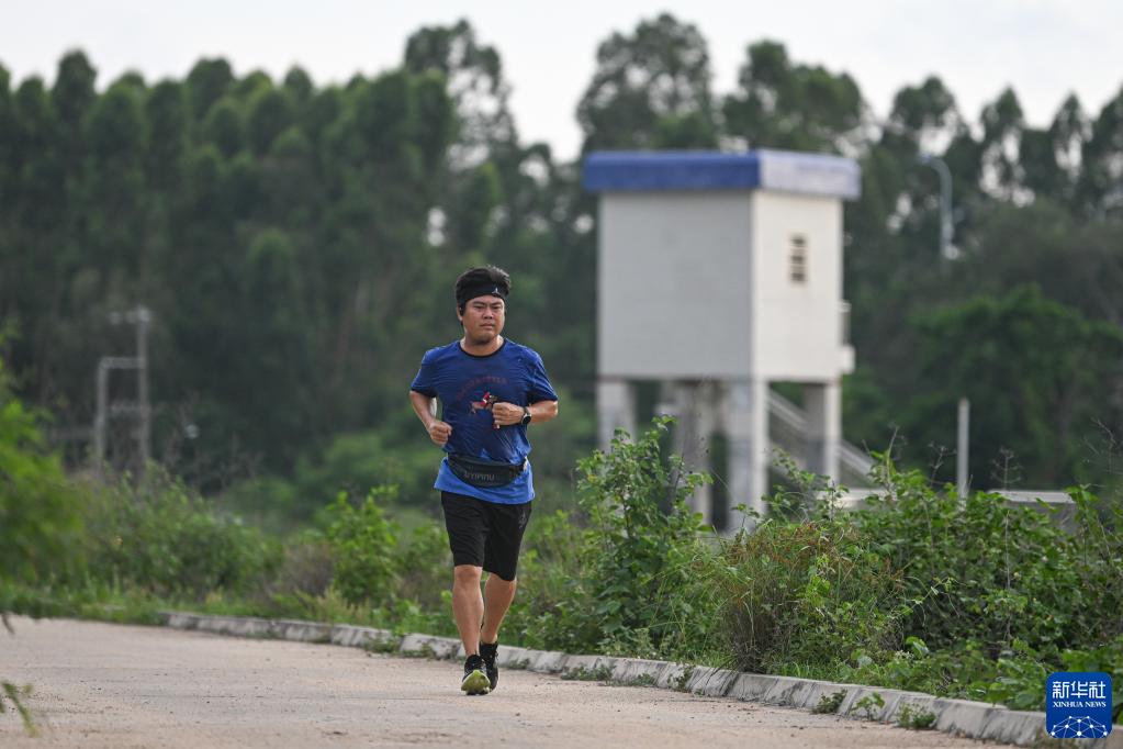 6月11日,市民在海南省東方市北黎河河堤跑步。