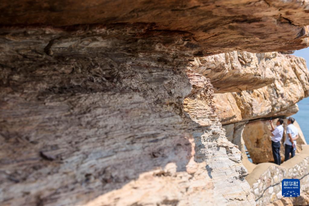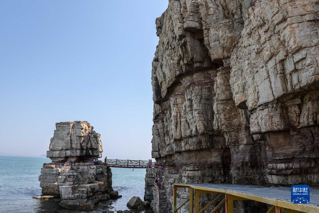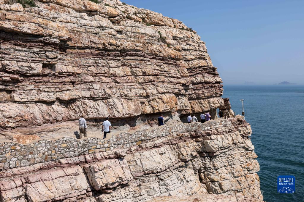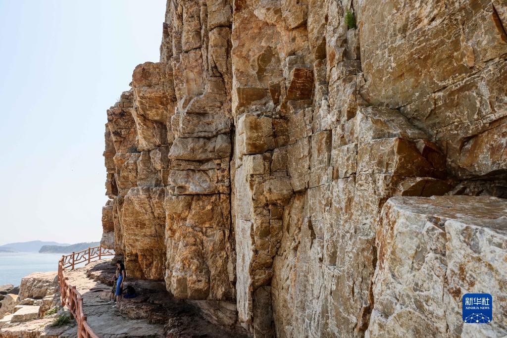 位于渤海灣山東長島海洋生態(tài)文明綜合試驗區(qū)內(nèi)的大黑山島是一座火山島,在島東端的龍爪山山腰部的石英巖上有一條長約1.5公里的因億萬年風化和海蝕作用形成的天然“棧道”,隨著海平面下降,“棧道”露出水面。據(jù)地質(zhì)部門勘察,海蝕“棧道”包含了大量古生物、海洋運動信息,具有較高的地質(zhì)學研究價值,每年吸引游客前來參觀。