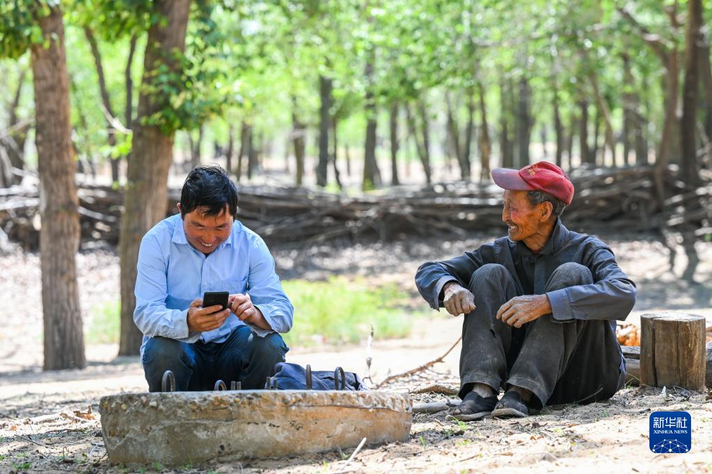 6月14日,曹扎娃(右)在樹林里和到訪的鄰居聊天。