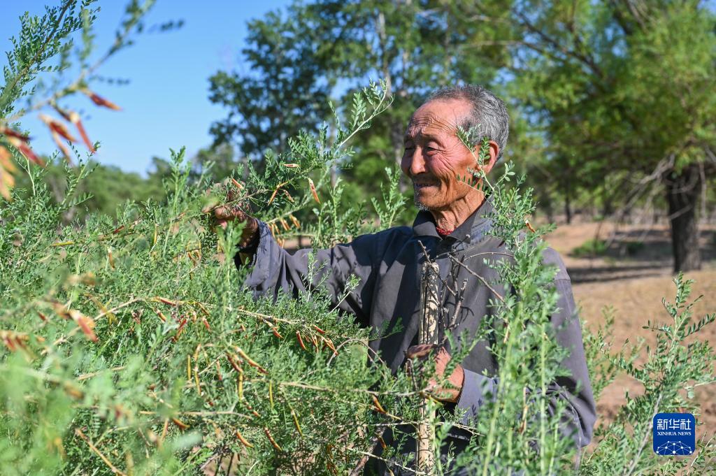 6月14日,曹扎娃在查看檸條所結(jié)的種子。
