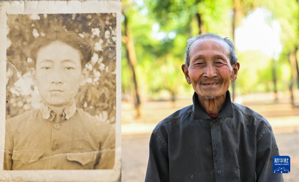 拼版照片,左圖為曹扎娃年輕時(shí)的照片(6月14日翻拍);右圖為曹扎娃現(xiàn)在的照片(6月14日攝)。