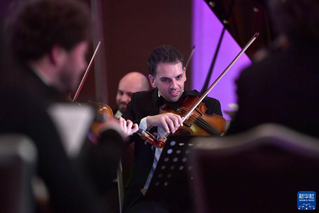 6月18日,在瑞士日內(nèi)瓦,瑞士圣普雷室內(nèi)樂團(tuán)在“唱響‘一帶一路’的贊歌”音樂招待會(huì)上演奏。
