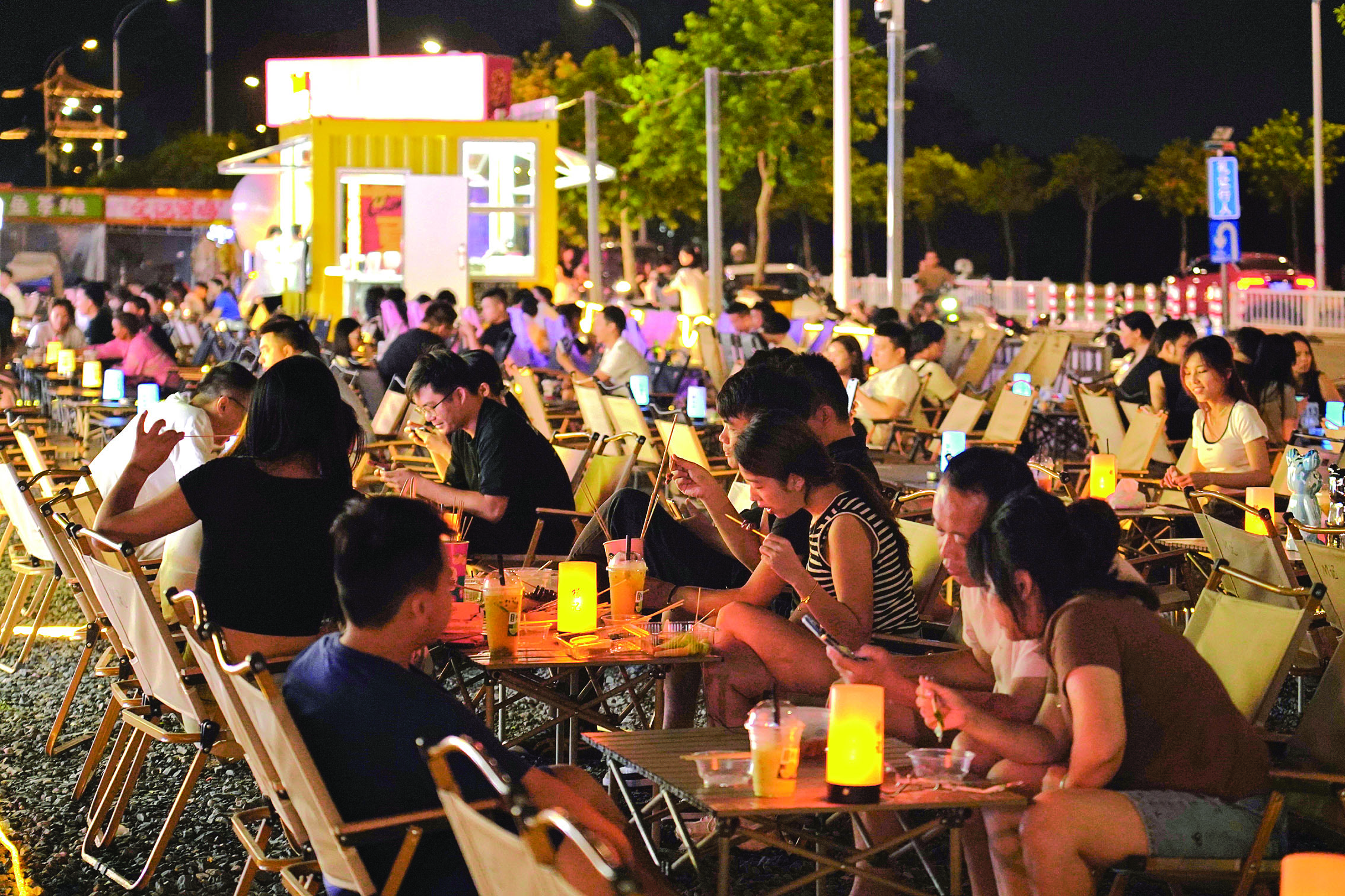 年輕人在花里頭潮聚公園品嘗美食。惠州日?qǐng)?bào)記者肖泓 攝
