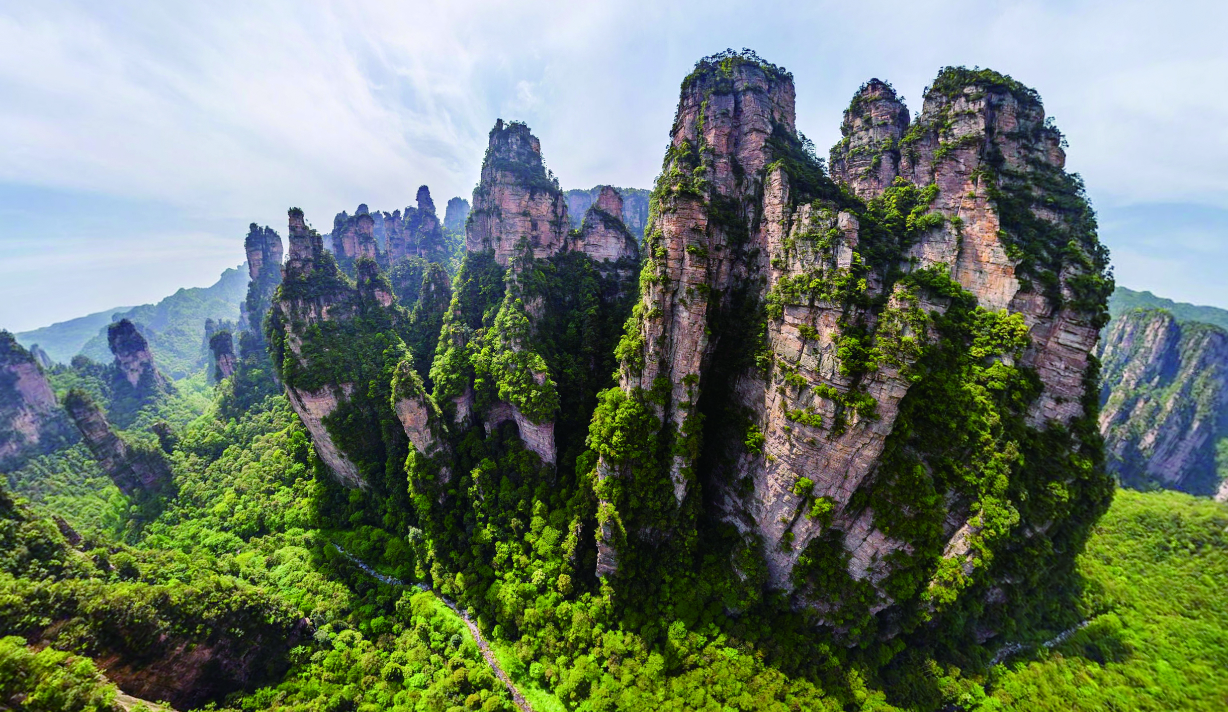 這座森林公園藏著億萬年的地質(zhì)密碼。約3.8億年前的泥盆紀(jì)石英砂巖,經(jīng)地殼抬升與流水侵蝕,造就了3000余根海拔超300米的峰林石柱,如人如獸、如器如物,形象逼真,氣勢壯觀,有“奇峰三千,秀水八百”之美稱。黃石寨的“南天一柱”、金鞭溪的碧水奇石、楊家界的絕壁峰墻,以及66秒直達(dá)山頂?shù)陌冽執(zhí)焯,共同?gòu)成了自然與人文交織的震撼景觀。